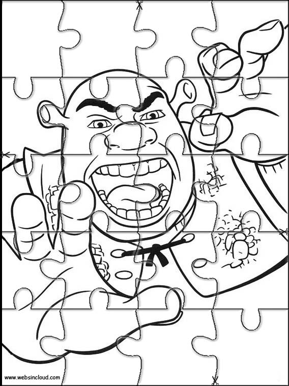 Aktivity pro děti. Vytiskněte a vystřihněte puzzle. Obrázky ke k vybarvení. Puzzle k vytištění Shrek 106